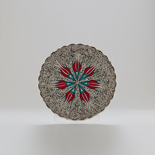 El yapımı İznik çinisi ve LALE BAHÇESİ desenli dekoratif tabak